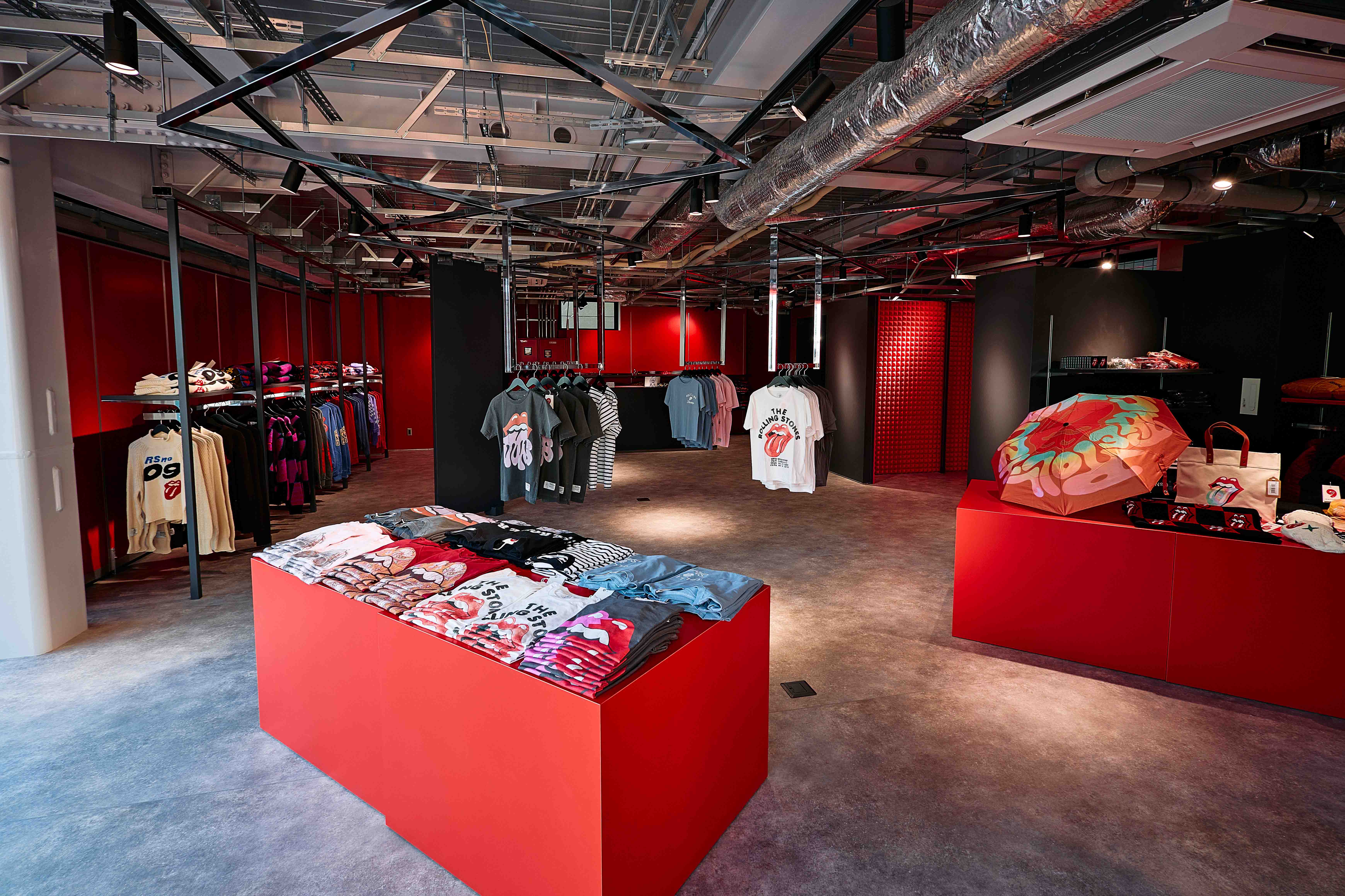 刺繍やヴィンテージ加工を施したアイテム、Tシャツからジャケットまで、ザ・ローリング・ストーンズの世界観を表現しつつ、ファッショントレンドの要素も多く取り入れられているアイテムが並び、ハットやソックス、傘やバンダナなどロンドンで扱われている商品がバリエーション豊富に揃っていながら、ロンドンでも扱っていない日本オリジナル商品も、当店限定で販売!
