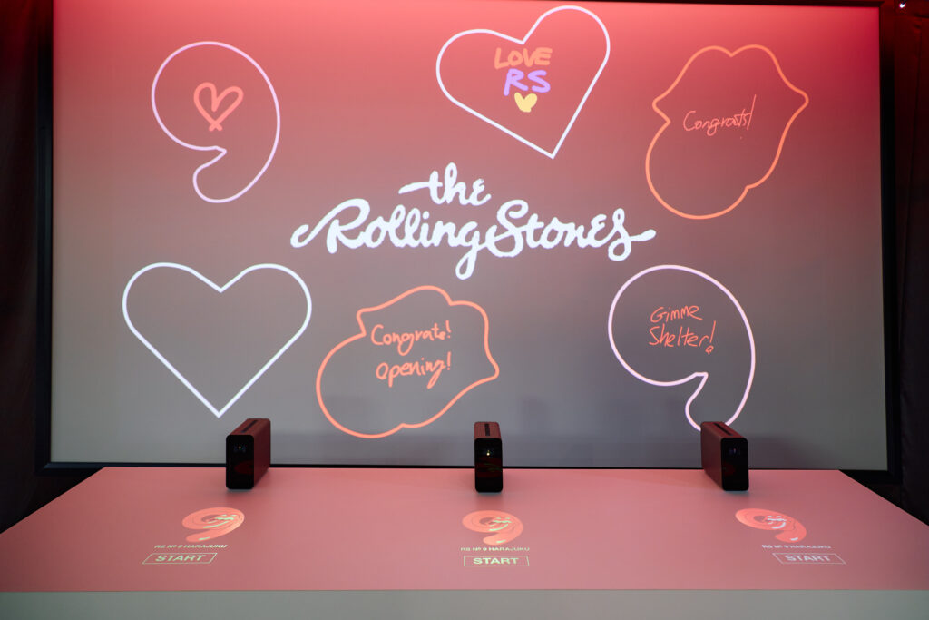 店内は、LIPS & TONGUEのオブジェや歌詞を使った装飾、レコーディングブースを模したコーナーなど、ロンドンのストアコンセプトが再現されており、「RS No.9」の世界観を楽しめるようになっています。